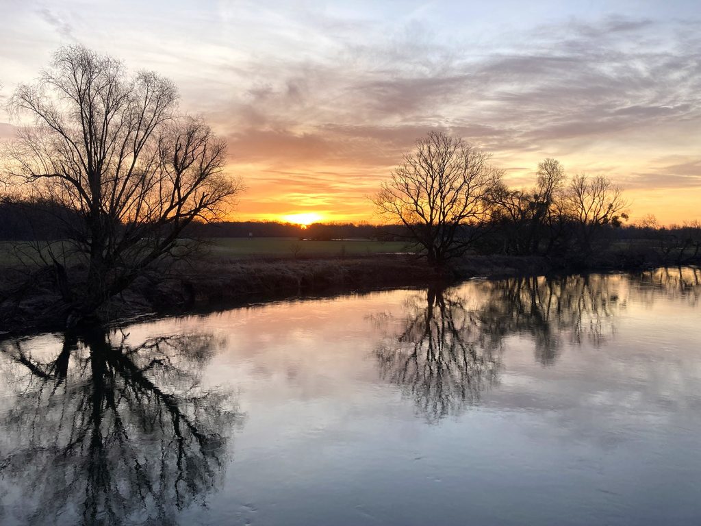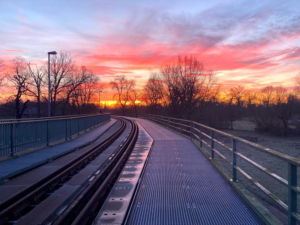 Ein kurzer Spaziergang zur 500 Meter entfernten Mulde bescherte heute diesen wundervollen Morgenspaziergang – hier auf der Wörlitzer Brücke.